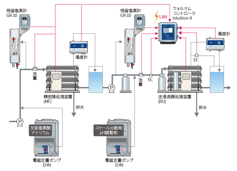 ケミカルポンプと水質制御機器の幅広いラインアップにより、要求される仕様に合った水造りが可能に。高機能コントローラには、ウェブを介して簡単にアクセスすることができます。