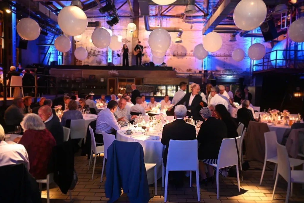 その後、会場をデュッセルドルフ市内の歴史を感じる古い工場を改装したパーティ会場に移し、祝宴が始まりました。