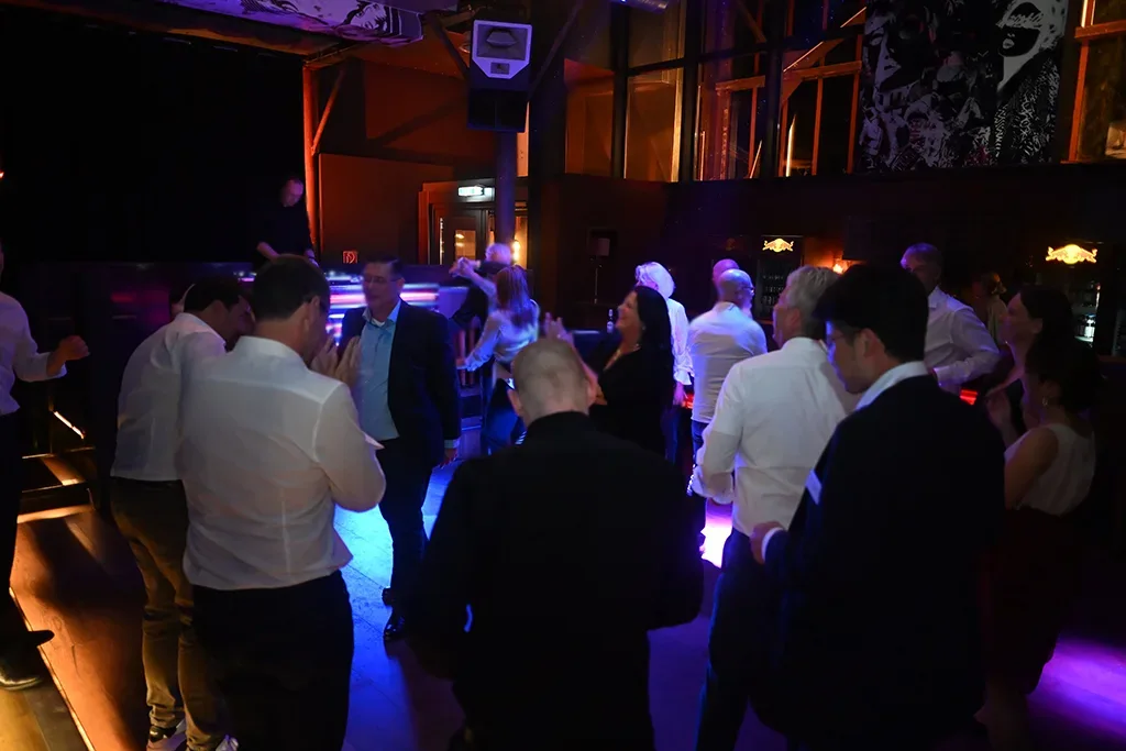 イワキヨーロッパCEOの挨拶でスタートし、美味しい料理を囲みながら、和やかな歓談のひとときが続きます。生バンドの演奏が会場を盛り上げ、宴の後半にはダンスフロアもオープン。参加者全員が楽しく時間を過ごし、気づけば午前零時を迎えていました。