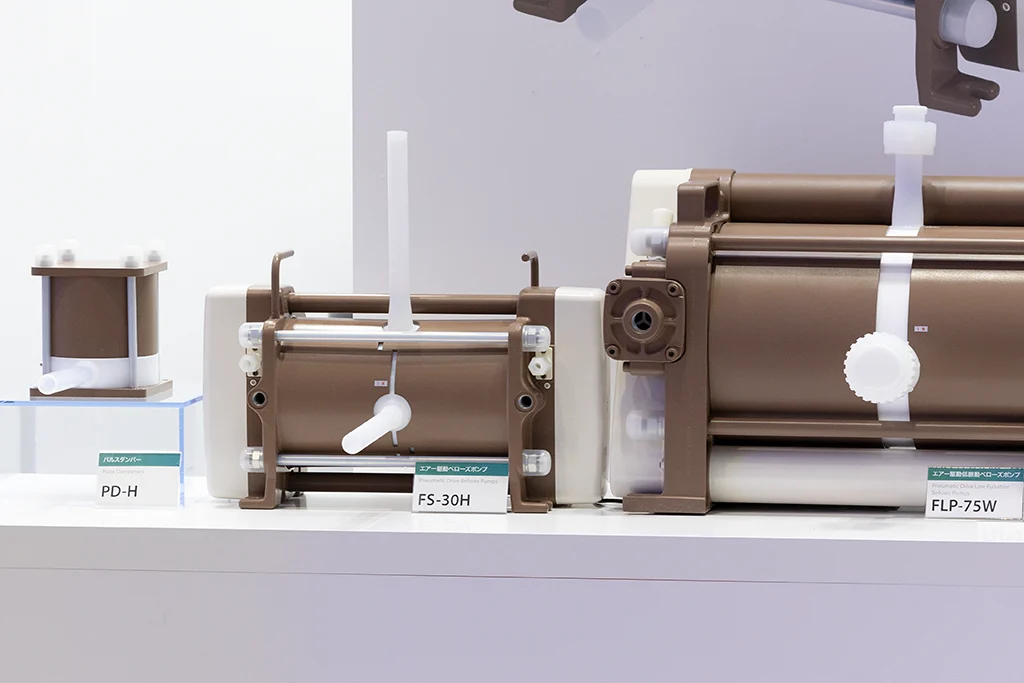 ダンパー不要で低脈動吐出を実現するエアー駆動低脈動ベローズポンプFLPの実演を行いました。