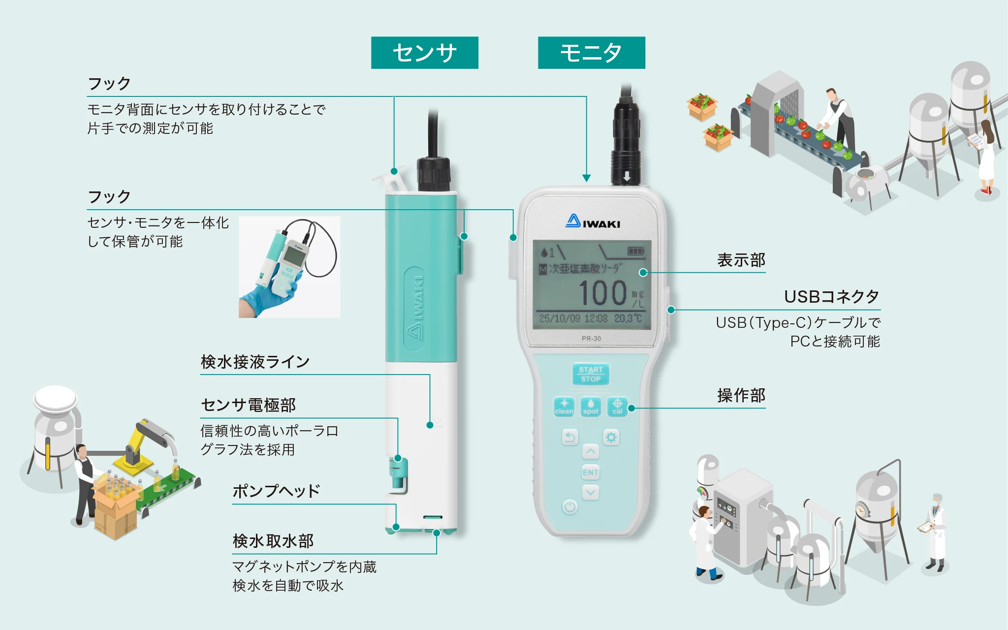PR-30は食品製造プロセスで活躍する残留塩素濃度計です。