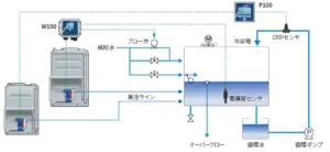 簡単なpH中和制御(P100)、1液管理の小規模クーリングタワー制御(W100)など